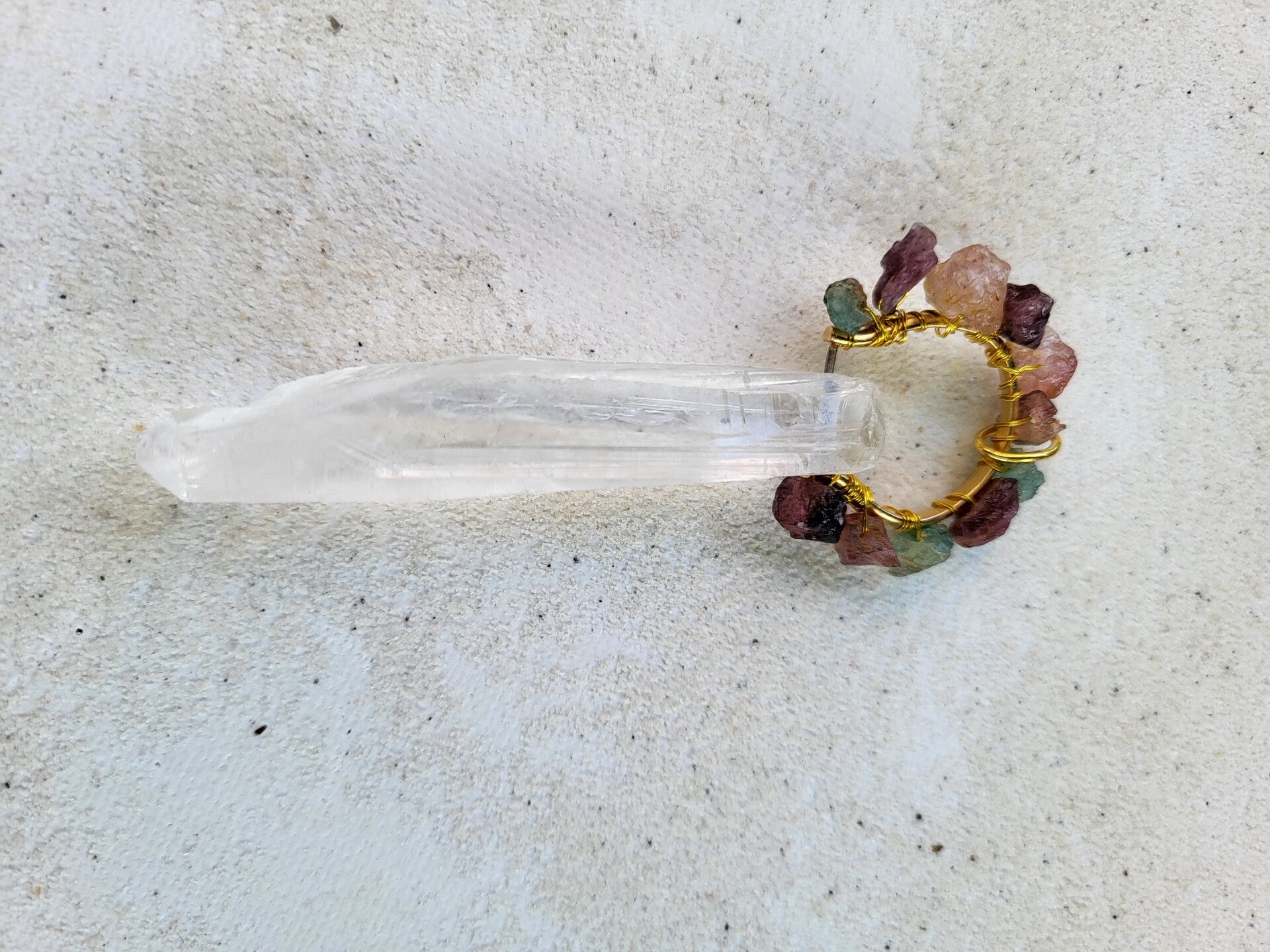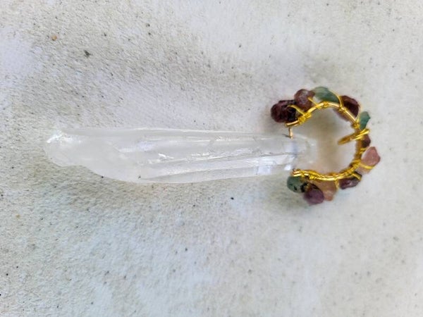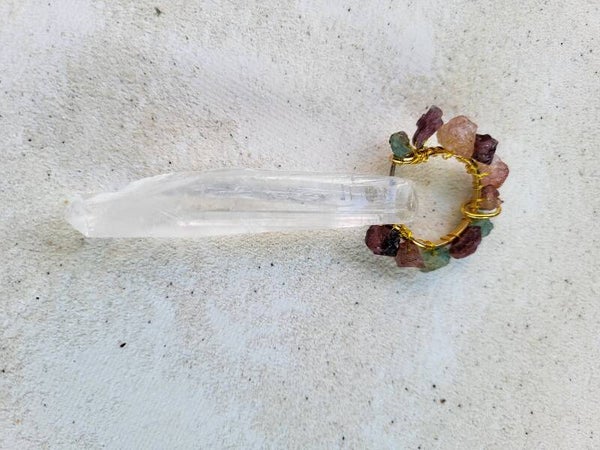 Bergkristal hanger/energytool met watermeloentoermalijn 85x33mm . Gebruik hem als hanger, pendel of healingtool