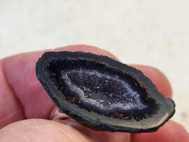 De kleinste agaat geodes in de wereld uit Mexico..Tabasco Geodes, formeel bekend als Illianites, zijn 's werelds kleinste geodeformatie. De meeste geodes hebben een kleine schil van agaat met kleine kwartskristallen in het midden, druzy genaamd. Agaat werkt aardend, stabiliserend en beschermend. De steen werkt kalmerend, laat je veilig voelen en zorgt voor zowel geestelijke als emotionele rust en balans. Het helpt jezelf accepteren en helpt vertrouwen hebben in jezelf. Het stimuleert de concentratie en analytisch denken en helpt om afstand te nemen en objectiever naar dingen, en jezelf, te kijken. Dit geeft overzicht en inzicht en helpt planmatig werken en het vinden van praktische oplossingen. Het helpt om doelen te stellen voor jezelf en hier naar toe te werken. Hierdoor stimuleert het persoonlijke groei en ontwikkeling. Agaat werkt ook beschermend tijdens het reizen. Fysiek heeft agaat een positieve werking op het immuunsysteem, het zenuwstelsel en zenuwpijn, spijsvertering, hart, de bloedvaten, ogen, maag, darmen, blaas en het stimuleert de stofwisseling. Door haar beschermende werking is het een goede steen voor vrouwen om tijdens de zwangerschap te dragen. Ook omdat het groei stimuleert en positieve werking op de baarmoeder heeft. De energie van agaat is zacht en rustig. De steen moet daardoor vaak wat langer gedragen worden voor hij effect heeft maar is daardoor wel heel geschikt voor gevoelige mensen en kinderen.