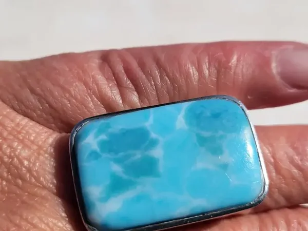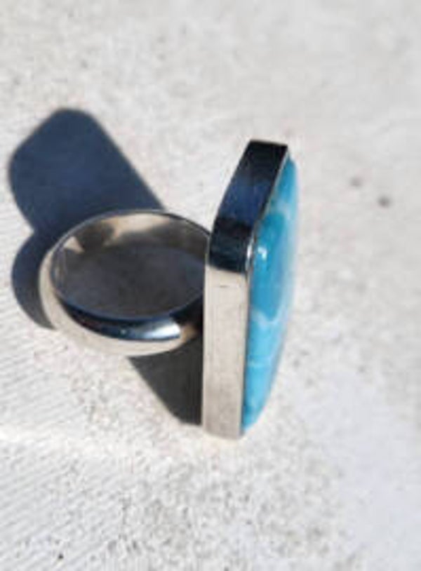 Grote 925 zilveren ring Larimar. Deze ring in handgemaakt. Maat 18.75.. bij juwelier kan evt kleine of ietsje groterr laten maken, mocht de maat niet goed zijn