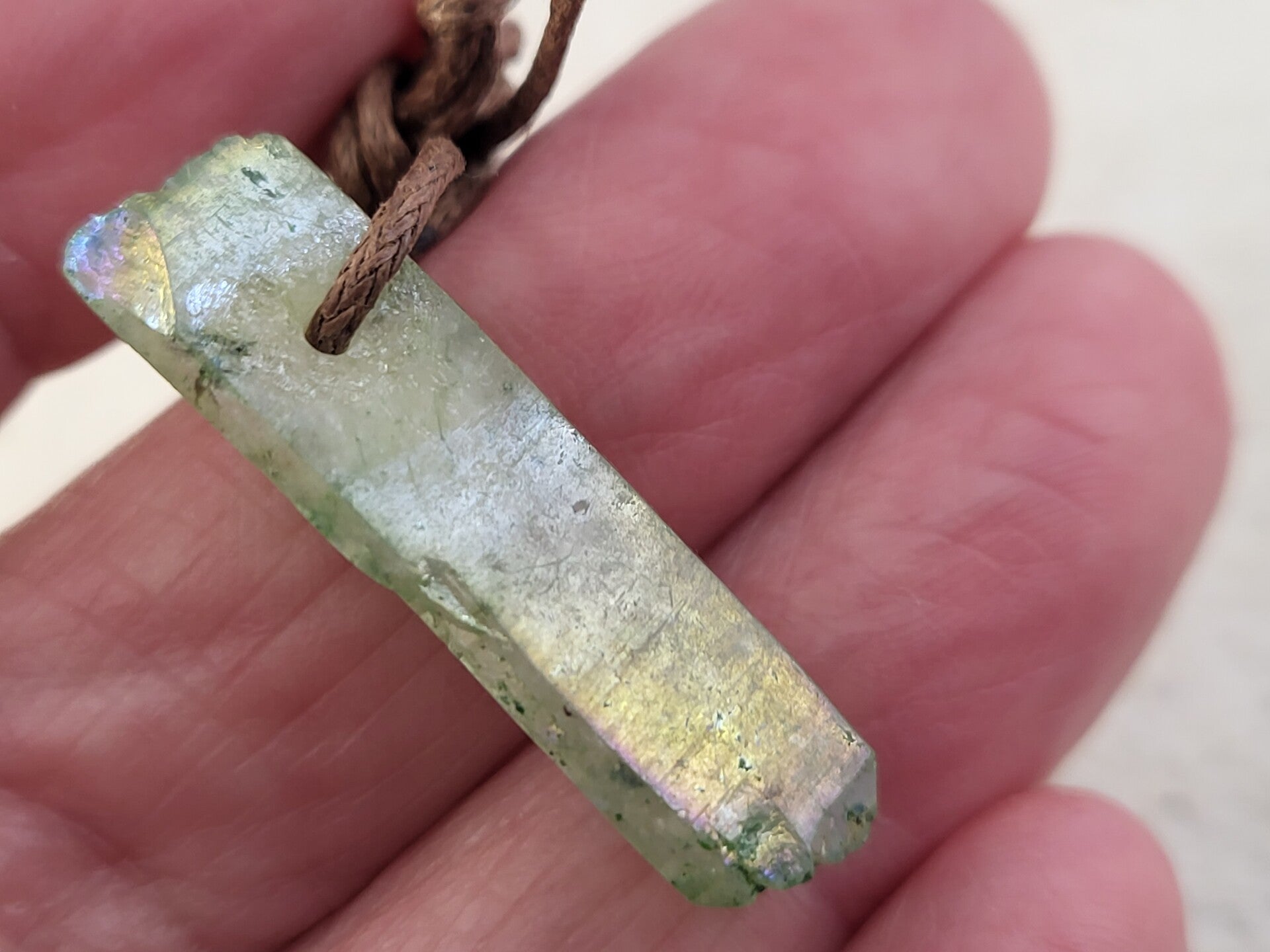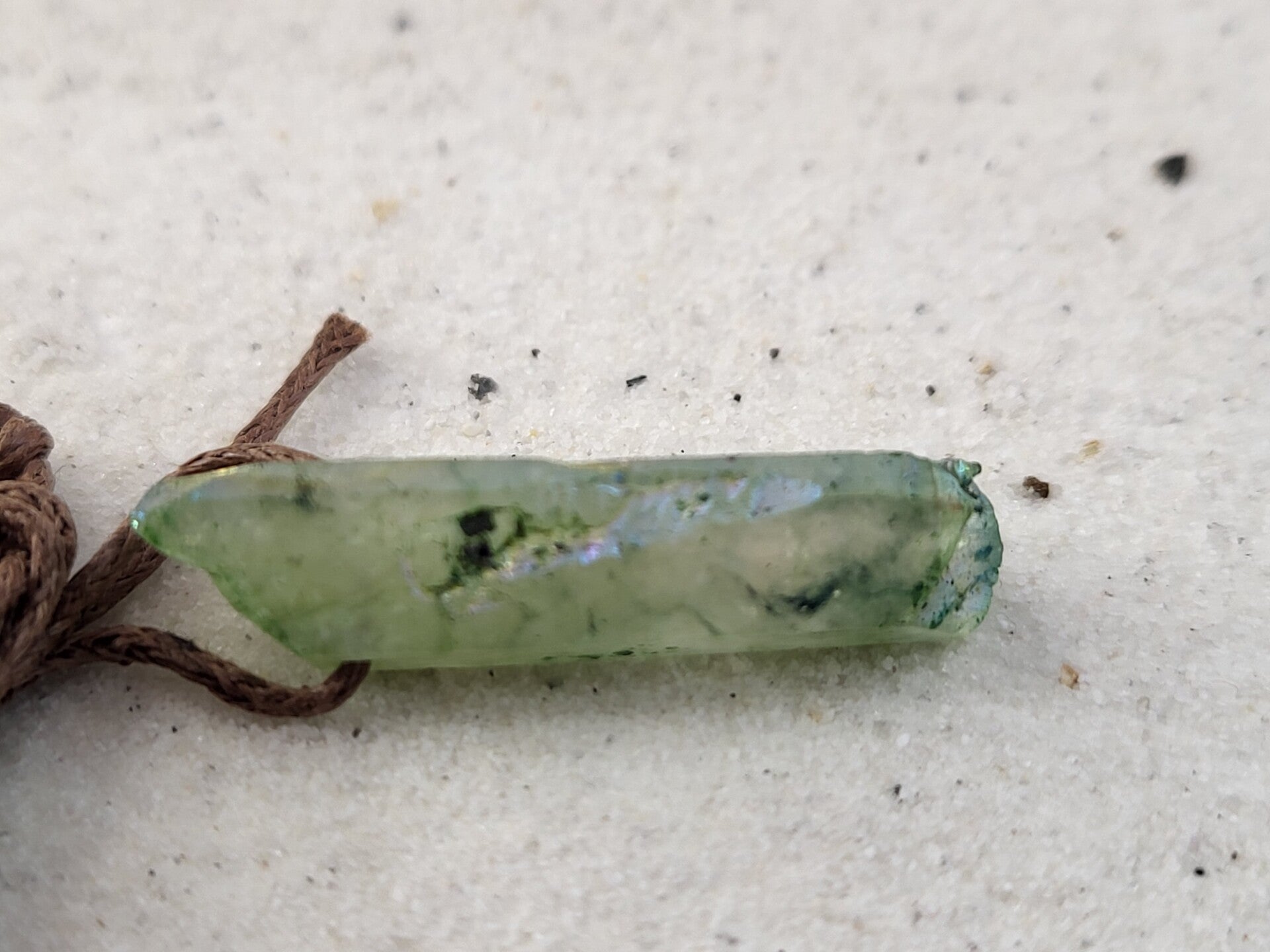 Aqua aura kwarts zijn bergkristal punten, clusters en stenen die behandeld worden met goud waardoor het oppervlak blauw wordt met een olieachtige glans met een regenboog aan kleuren. Deze laag is permanent en kan er niet afgewassen worden.