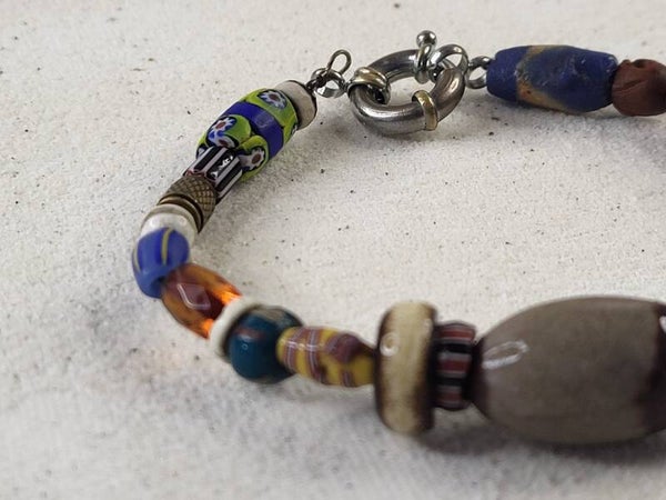 Dit zijn antieke kralen die in allerlei vormen en kleuren zijn gemaakt in Europa en verhandeld in Afrika en Noord Amerika.. Omdat het glaskralen zijn, dus kwetsbaar, zijn de authentieke oude kralen steeds moeilijker te vinden. De meeste Tarde Beads hebben tenminste "gereisd" naar 3 continten en zijn vaak intensief gedraken , vandaar dat krasjes, butjes etc erbij horen. Handgemaakt dus uniek .
