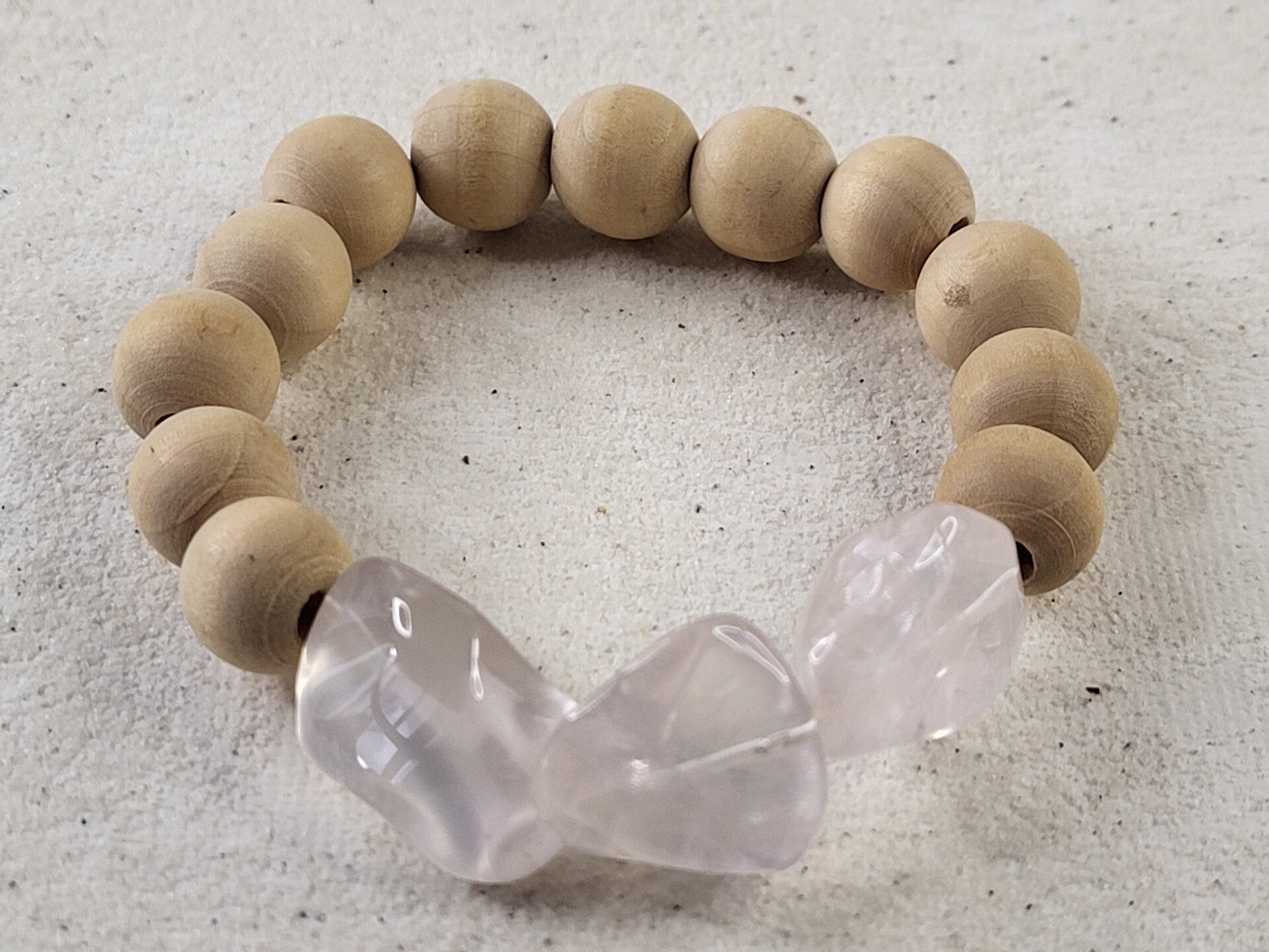 Leuke armband met 3 freeform kralen 20-25mm van roze kunziet maat : 17
