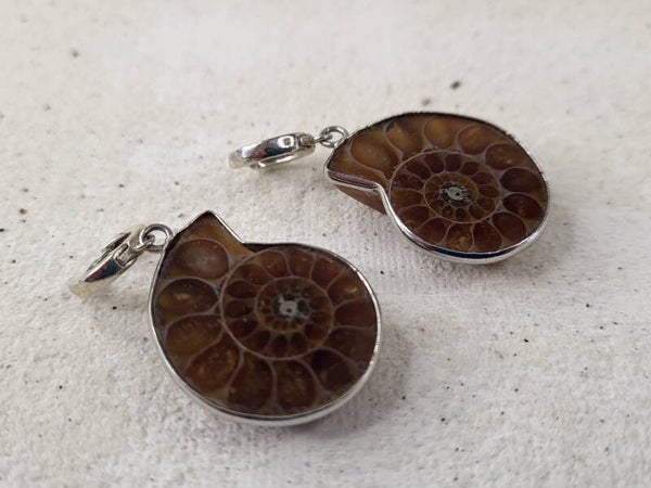 Mooie fossiele ammonietjes met 925zilveren rand aan 925 zilveren klap creolen, lengte 43mm , kunnen natuurlijk ook aan haakjes als je dit liever hebt
