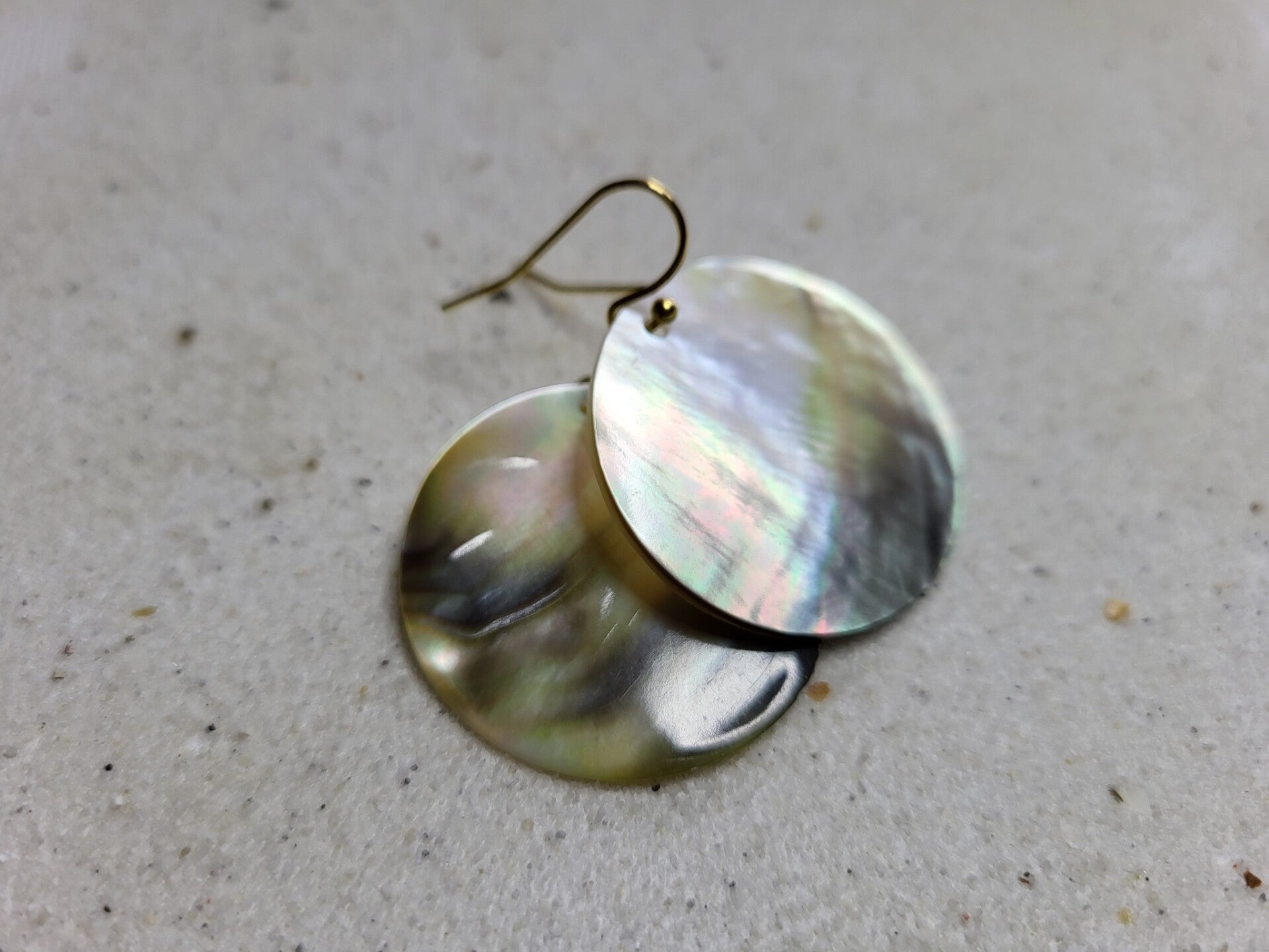 Mother of pearl.oorhangers met goudkleurige haakjes...simpele schoonheid en heerlijk licht om te dragen, overal bij..lengte 38mm