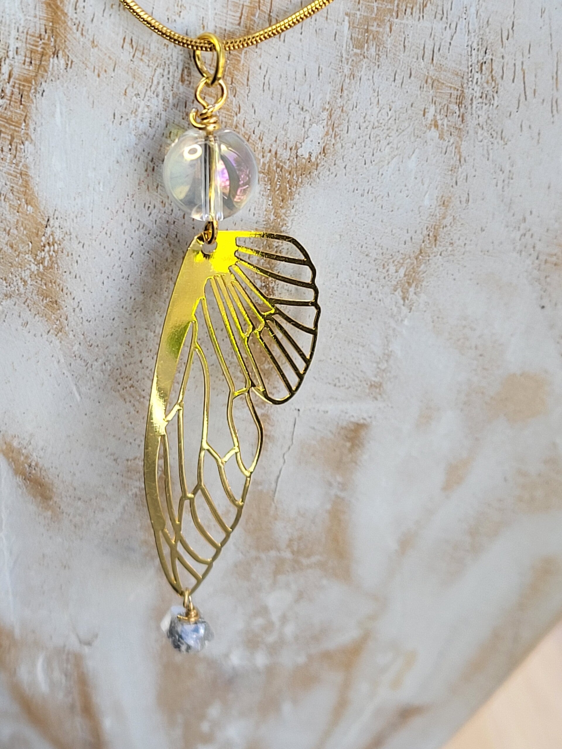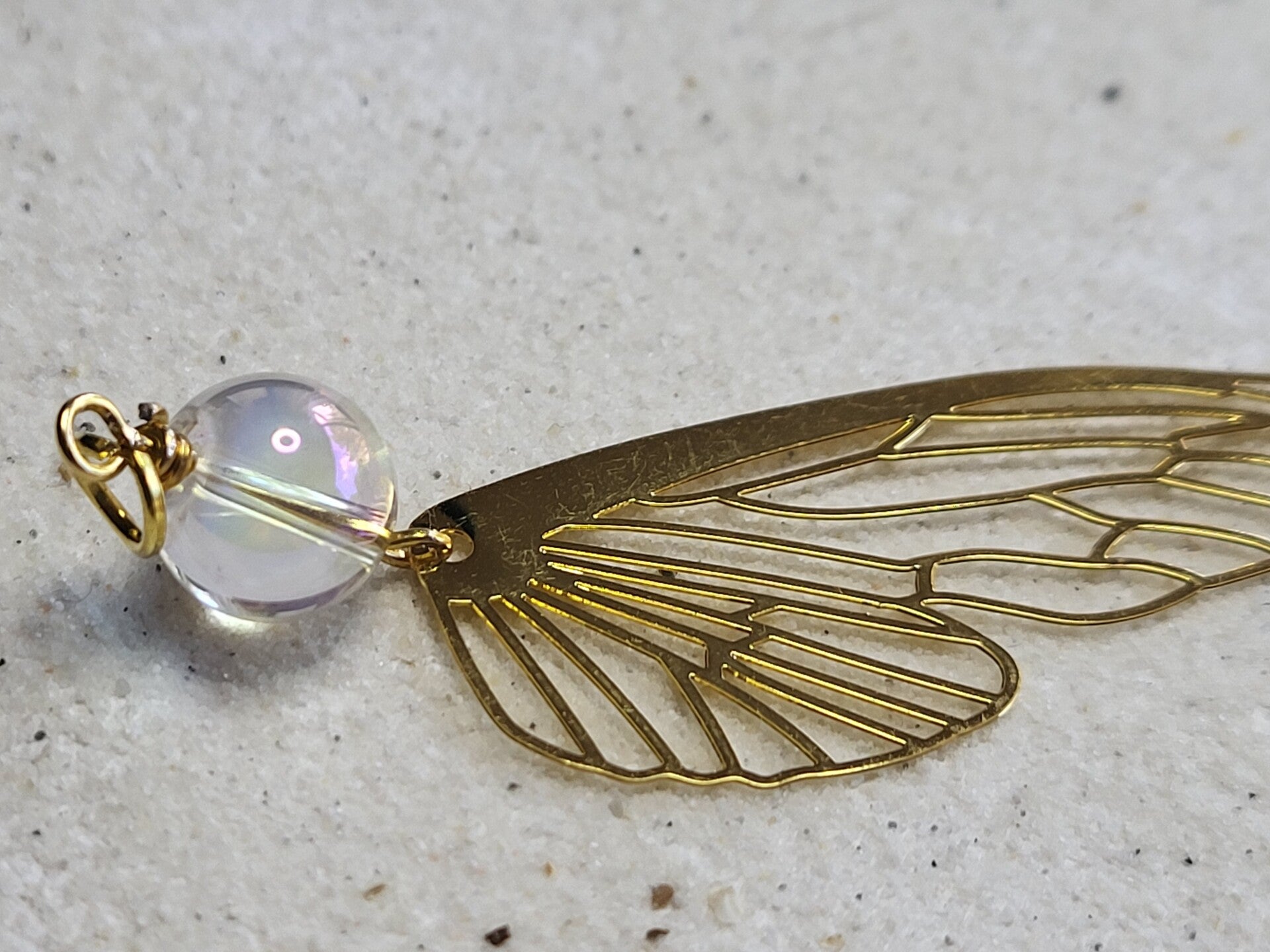 Gouden elvenvleugel hanger totale lengte 80mm nr 2