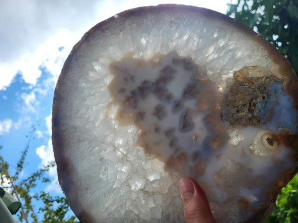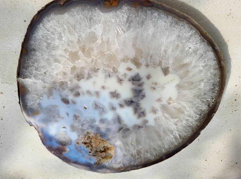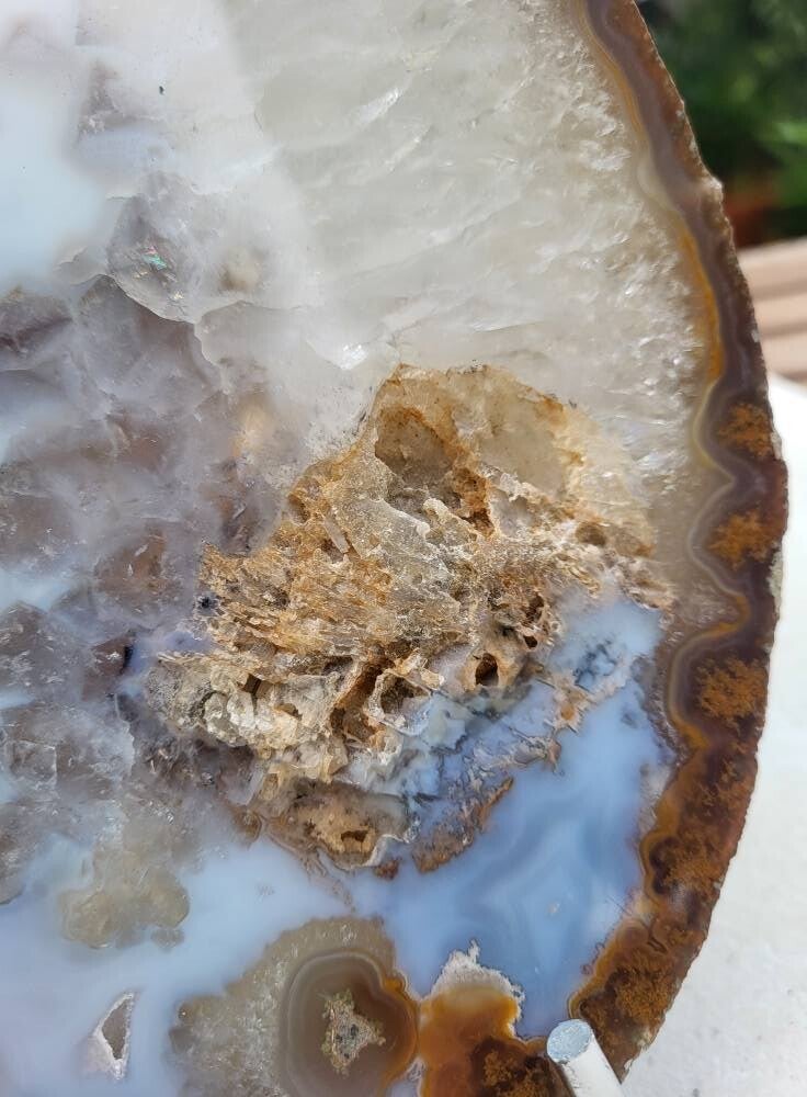 Grote agaat slice met druzy 280x260x25mm 3300 gram
