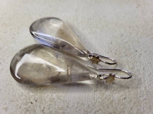 prachtige lange rookkwarts 925 zilveren oorhangers met sterretje