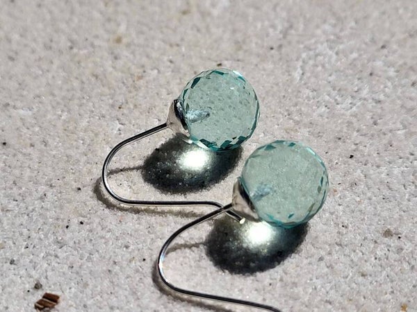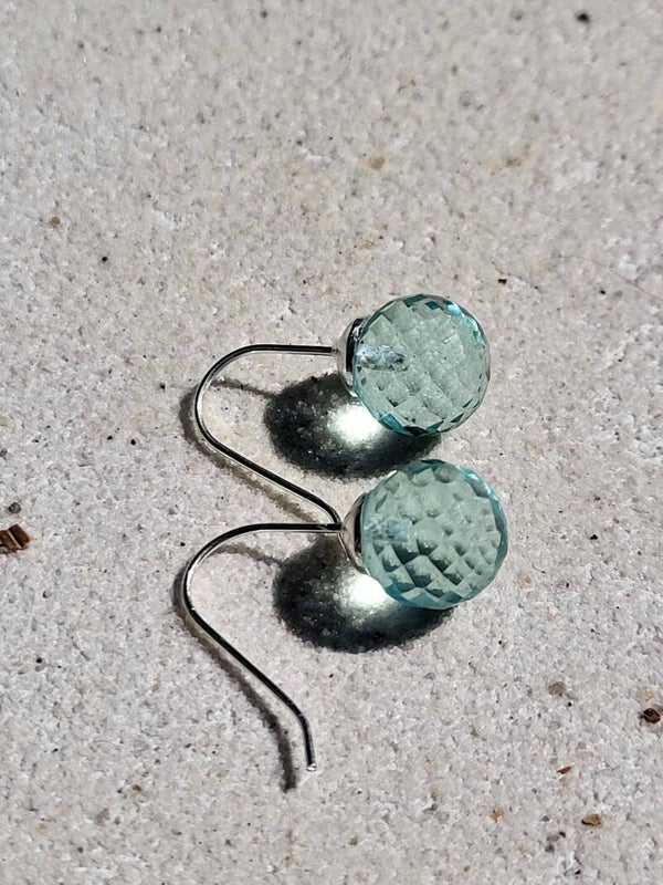 Lieve kleine 925 zilveren oorbellen met facet geslepen aquamarijn. Lengte 23mm